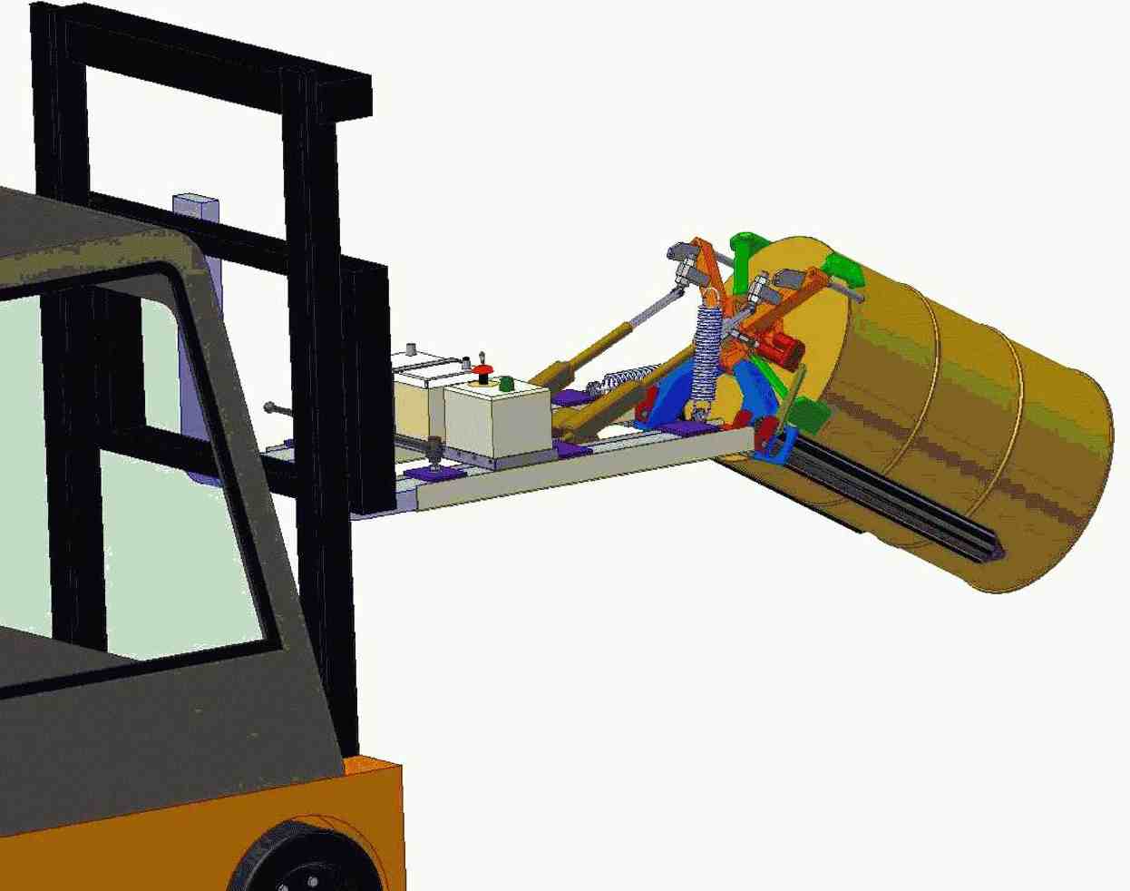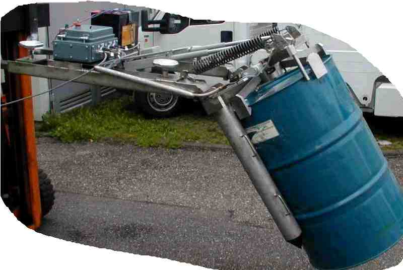 Barrel handling system. For lifting barrels up to 200 kg. For lifting and tipping. Electrical drift 12 VDC, remote controlled. Off grid usage (no connection to the stapler). | |