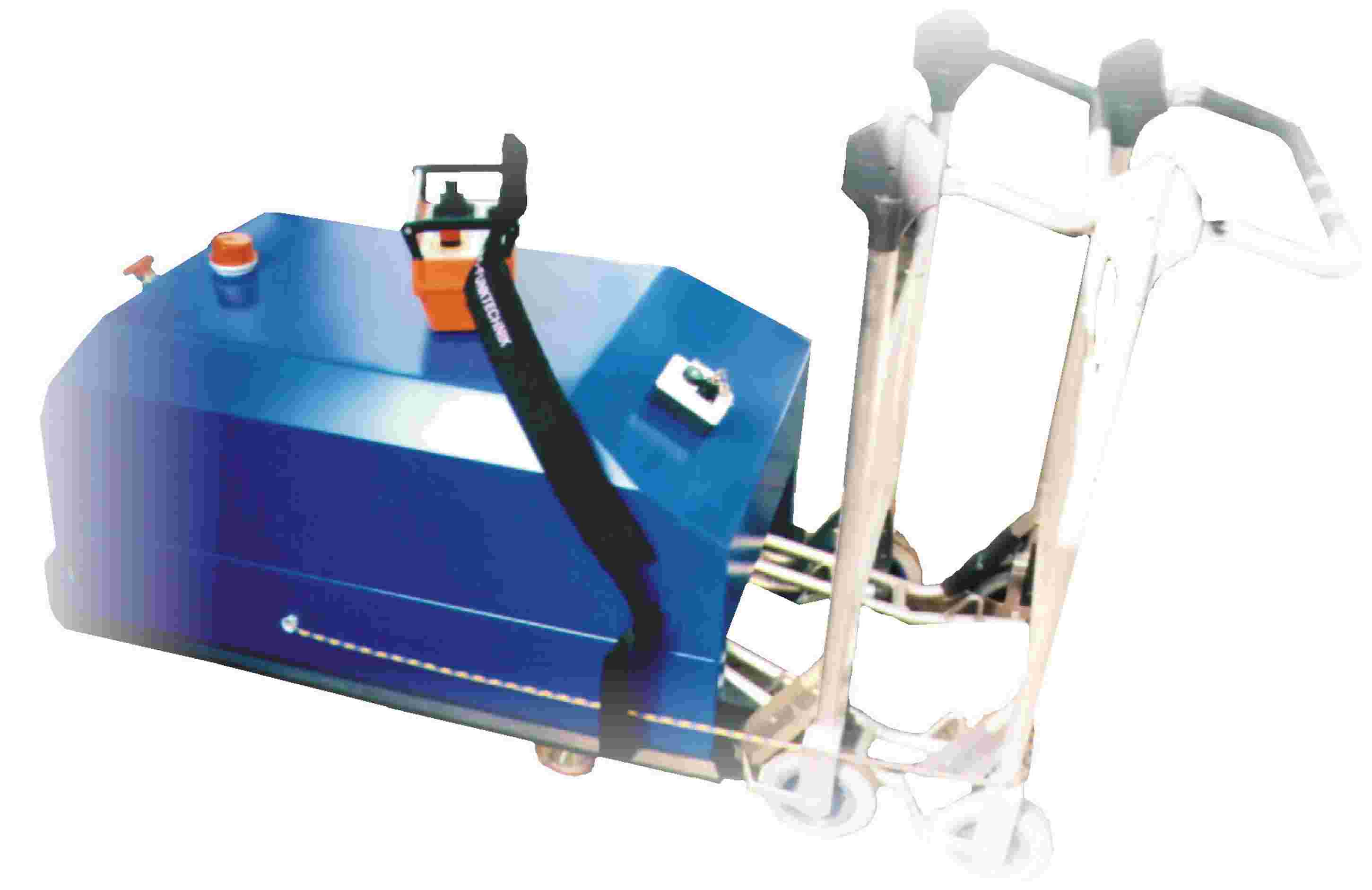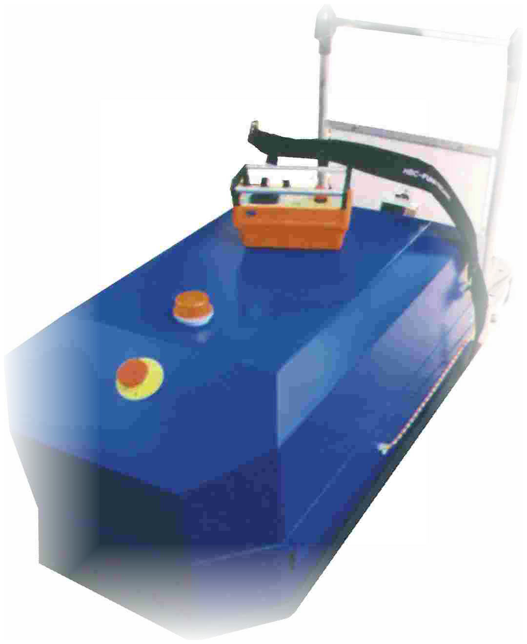 Wireless controlled trawler cars for airports: Drift voltage 24 VDC, impulse controlled, staples steering, power 1000 W, speed 3,3 mph. Dimensions: (wxdxh) 1200 x 600 x 600 mm, steering radius 1000 mm. Wireless control system allowed for class 3 human usage. Battery operating time 8-10 h. | |