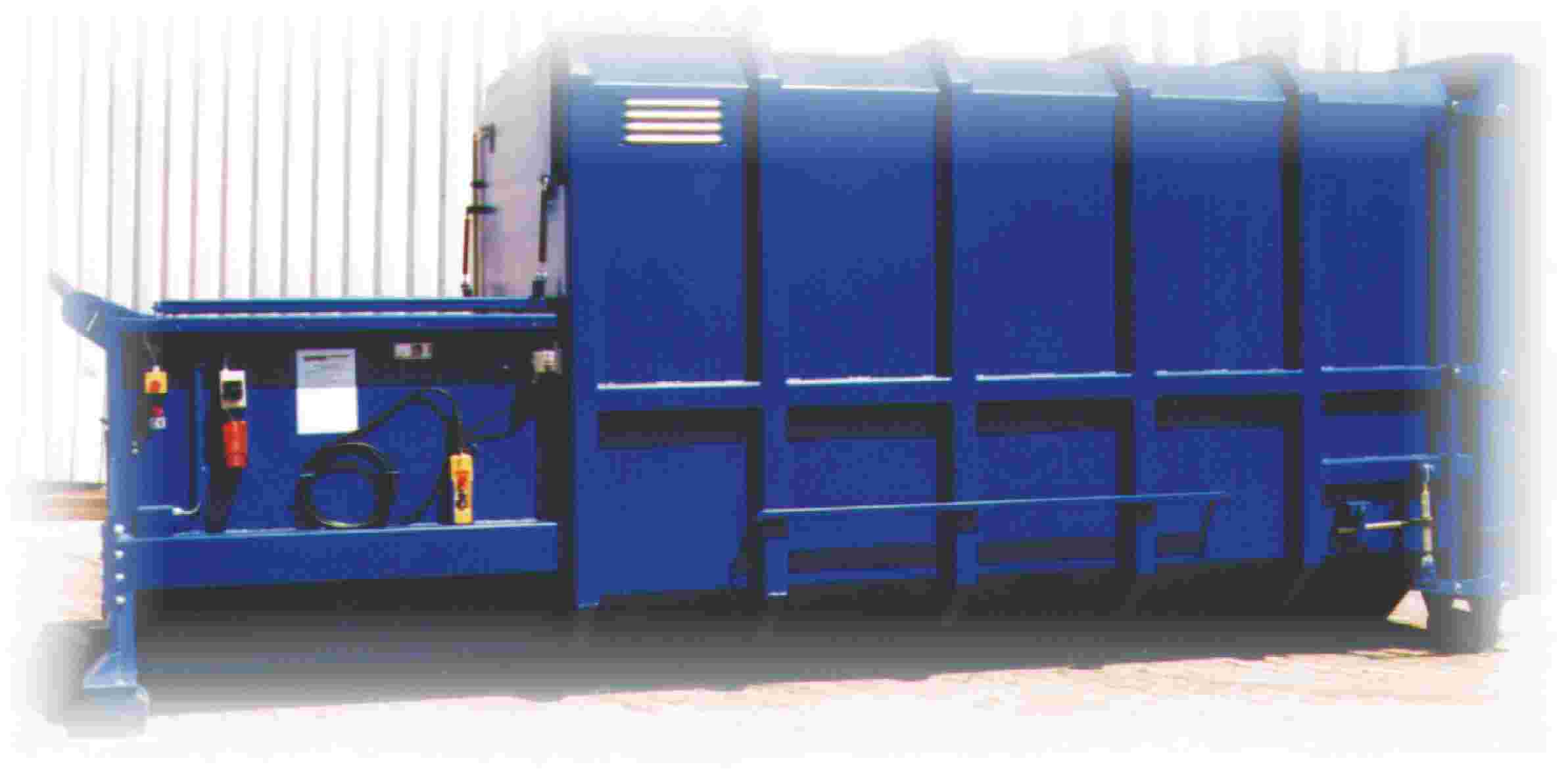 Self pressing garbage container. Pressing force 250 kN (25 tons), hydraulically powered, electromechanical and aeromechanical operating. | |
