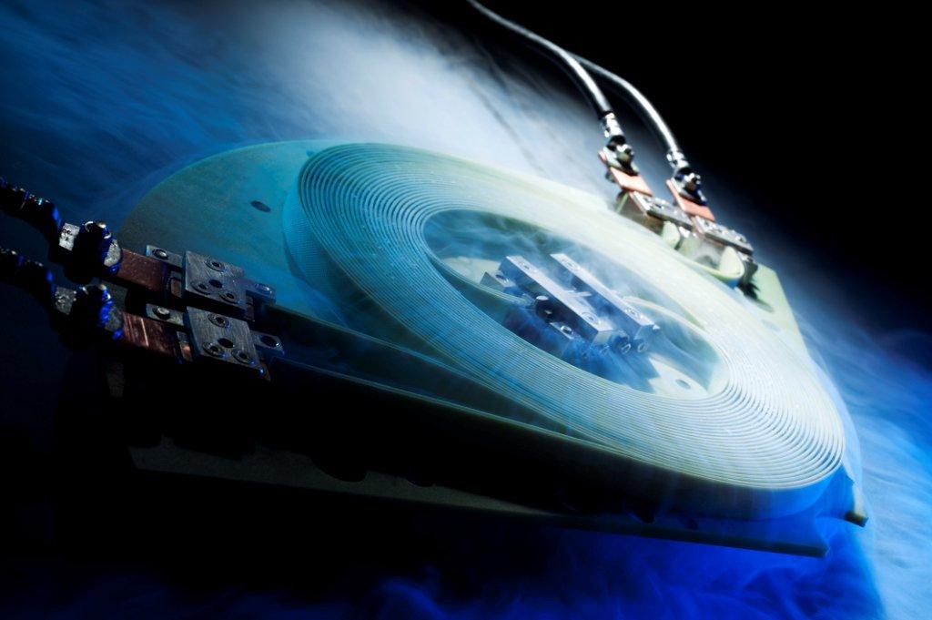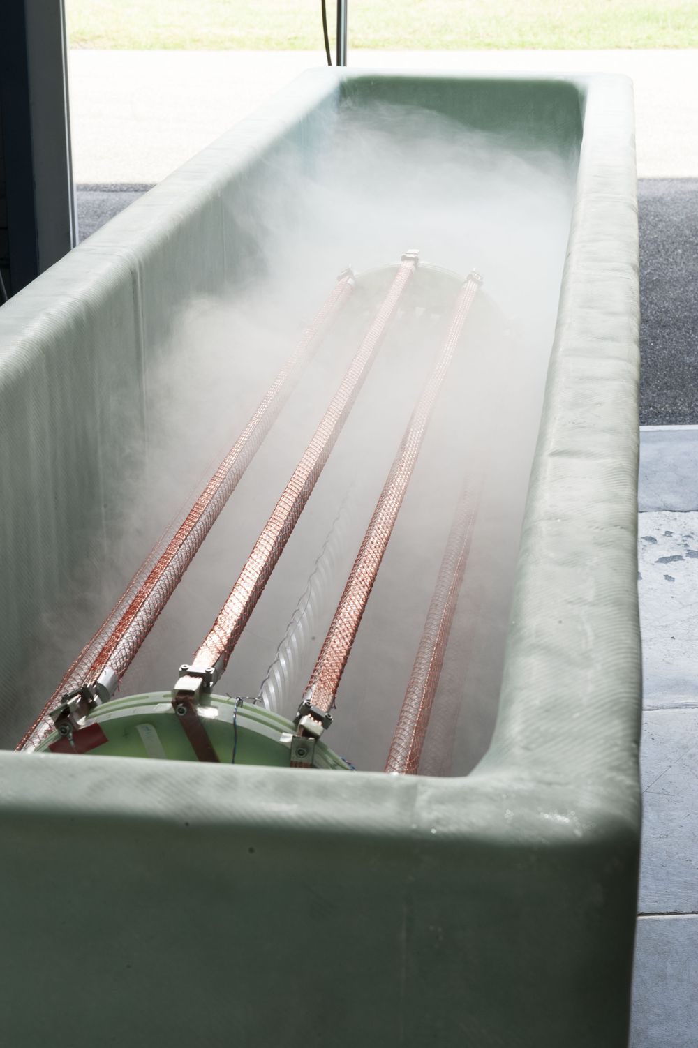 Test facility for 3-phase super conducting cable. Tested in liquide nitrogen. |