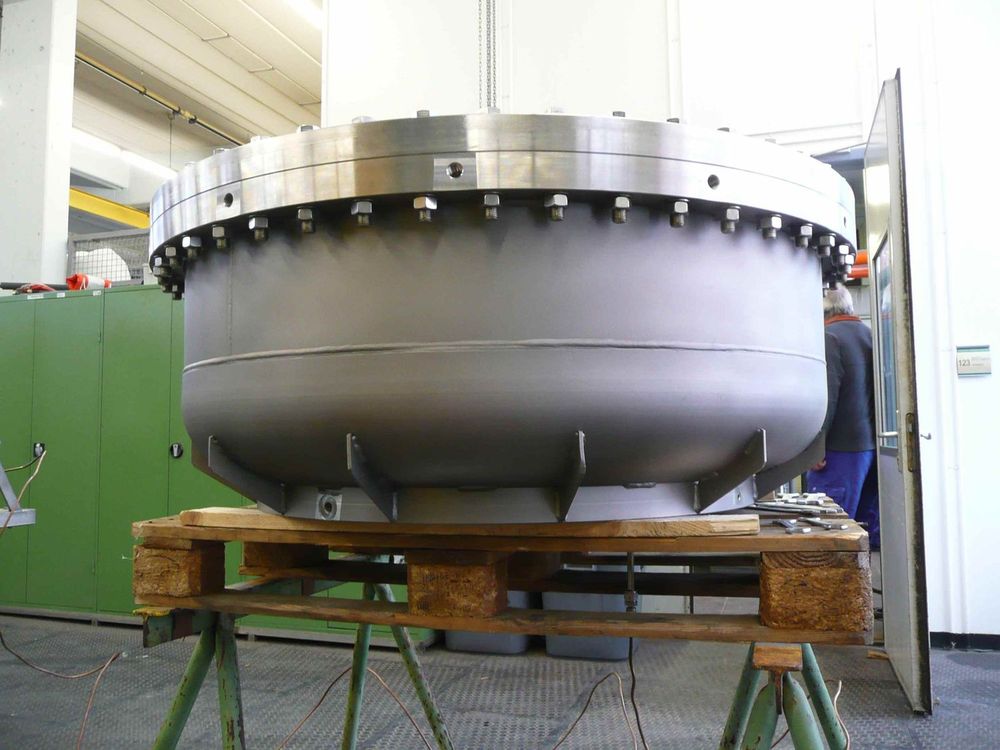 Ultra High Vacuum (UHV) vessels or pressure vessels. AD2000 standard. Also ASTM standard conversion to AD2000 with TÜV preliminary approval. In stainless steel and in G10 as well. Analysis with Finite element method (FEM). | |